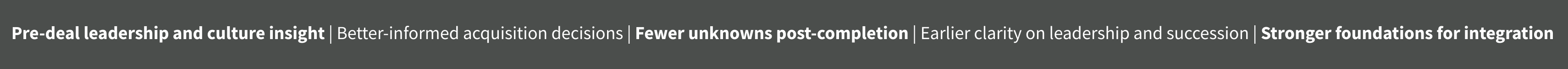 Using a pre-acquisition leadership and culture diagnostic, Quirk worked with senior stakeholders to explore: